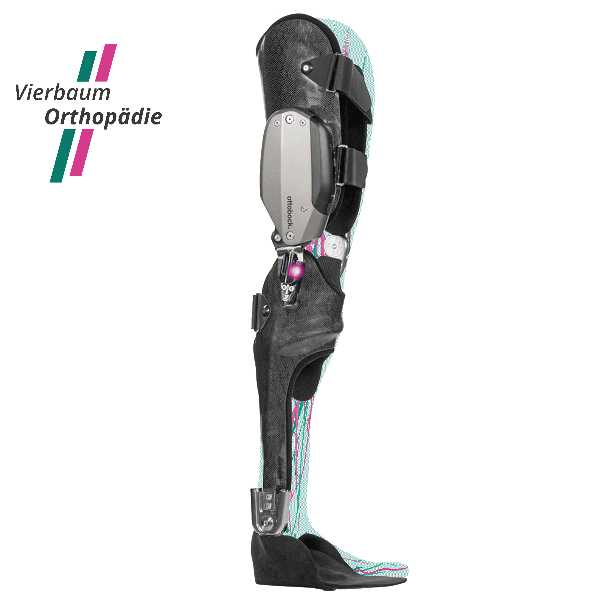 Die individuelle C-Brace® Orthese steuert durch einen Mikroprozessor die Stand- und Schwungphase. Dadurch hat der Anwender ein hohes Maß an Sicherheit und eine neue komfortable Gangqualität, die sich wechselnden Untergründen und Gehgeschwindigkeiten anpasst.